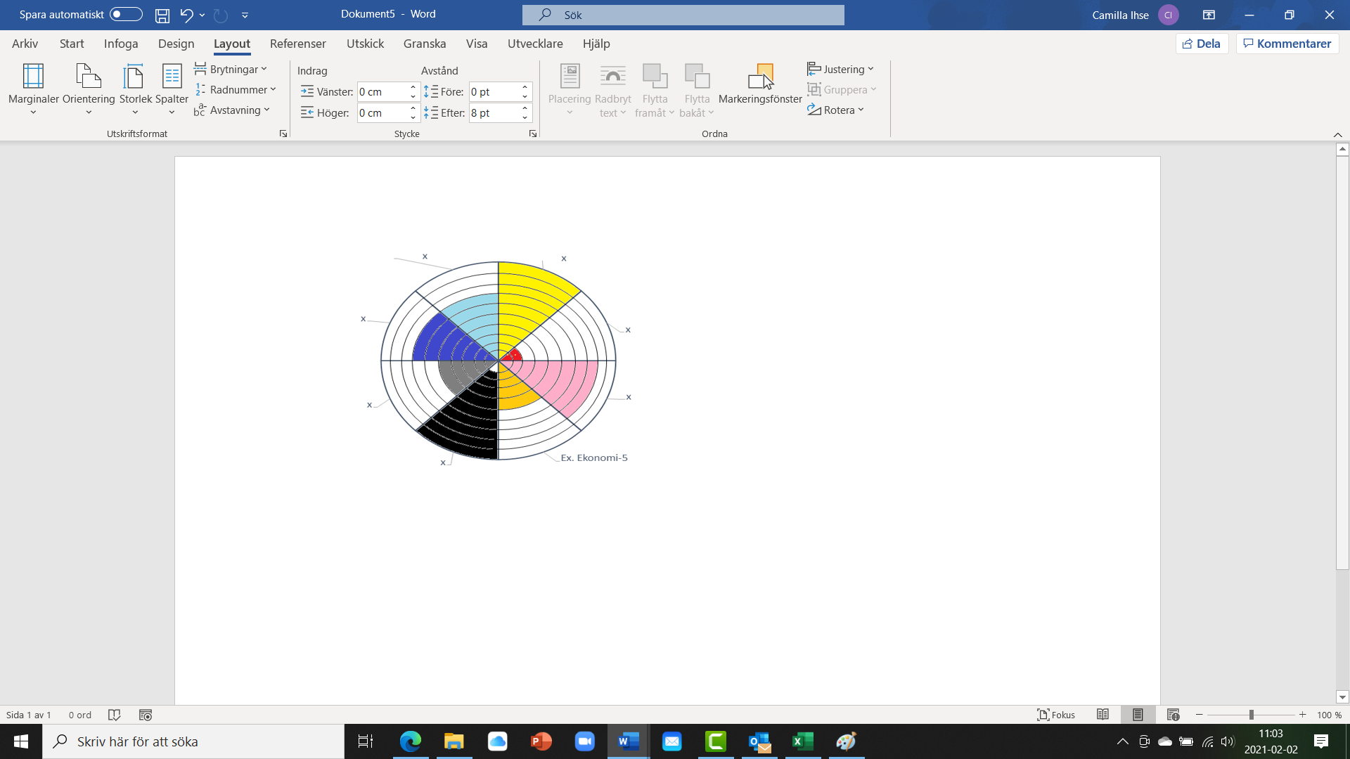 - Dela in cirkeln i 8 olika delar eller tÄrtbitar och benÀmn vilka delar som du vill ska ingÄ. Fyll i rubrikerna genom att dubbelklicka pÄ kryssen som finns runt hjulet eller rita en cirkel pÄ ett papper och dela in den i 8 delar och fyll i vad som ska ingÄ.