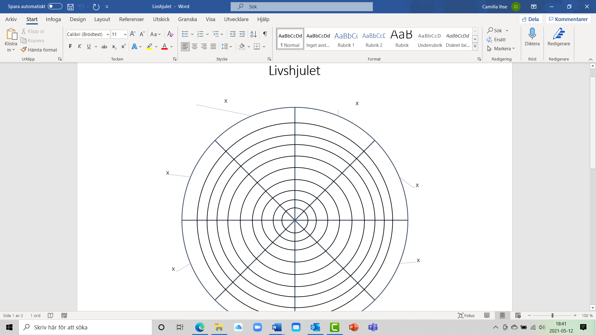 Ta fram penna och skriv ut dokumentet eller fyll i direkt i datorn. Det gÄr ocksÄ bra om du sjÀlv vill rita upp livshjulet pÄ ett eget papper.